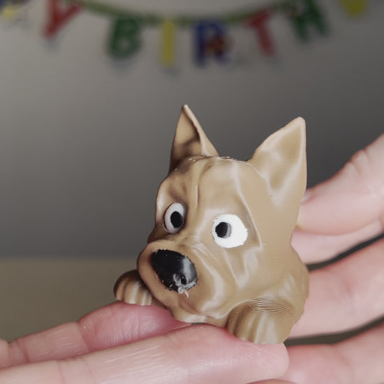 Celebrate birthdays in the cutest way with this Cairn Terrier candle holder cake topper 🐾! Inspired by Toto from The Wizard of Oz, this small but delightful piece is perfect for smash cakes, cupcakes, or any special dessert. Each dog topper securely holds one cylindrical birthday candle (included) and comes in your choice of black or brown. Whether it’s for kids’ birthdays, pet-themed parties, or a fun surprise for dog lovers, this 3D printed piece adds a unique and heartwarming touch. Features an articulated design where the back half rotates!